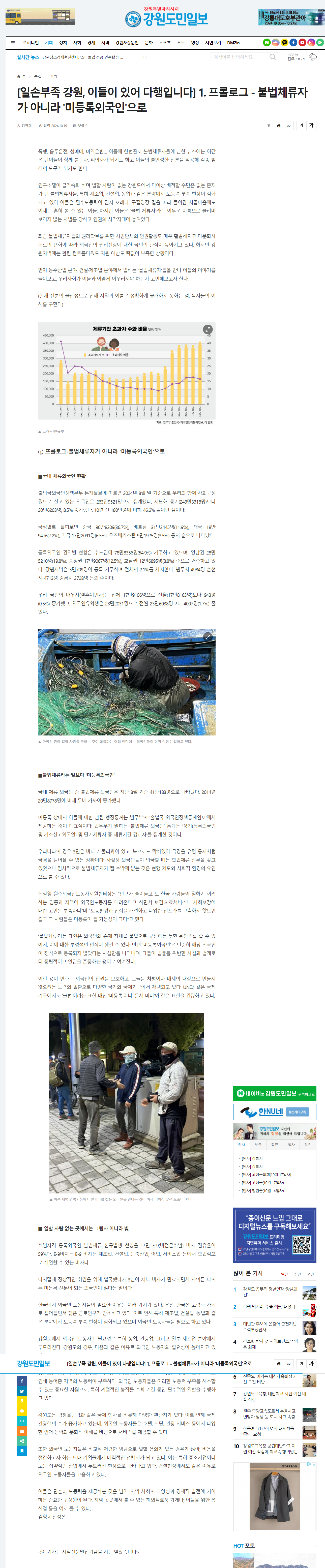 | [강원도민일보] 일손부족 강원, 이들이 있어 다행입니다_2. 농어촌에 뿌리 내린 미등록외국인 근로자 (0) | 2024.10.22 |