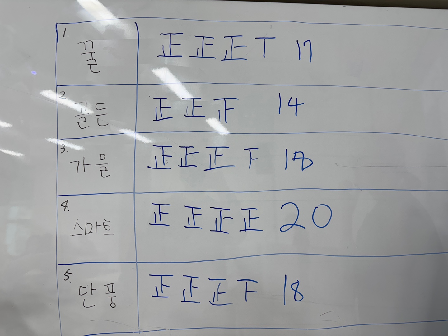 역시 순발력이 좋았던 학생들이 두각을 나타내었습니다.
