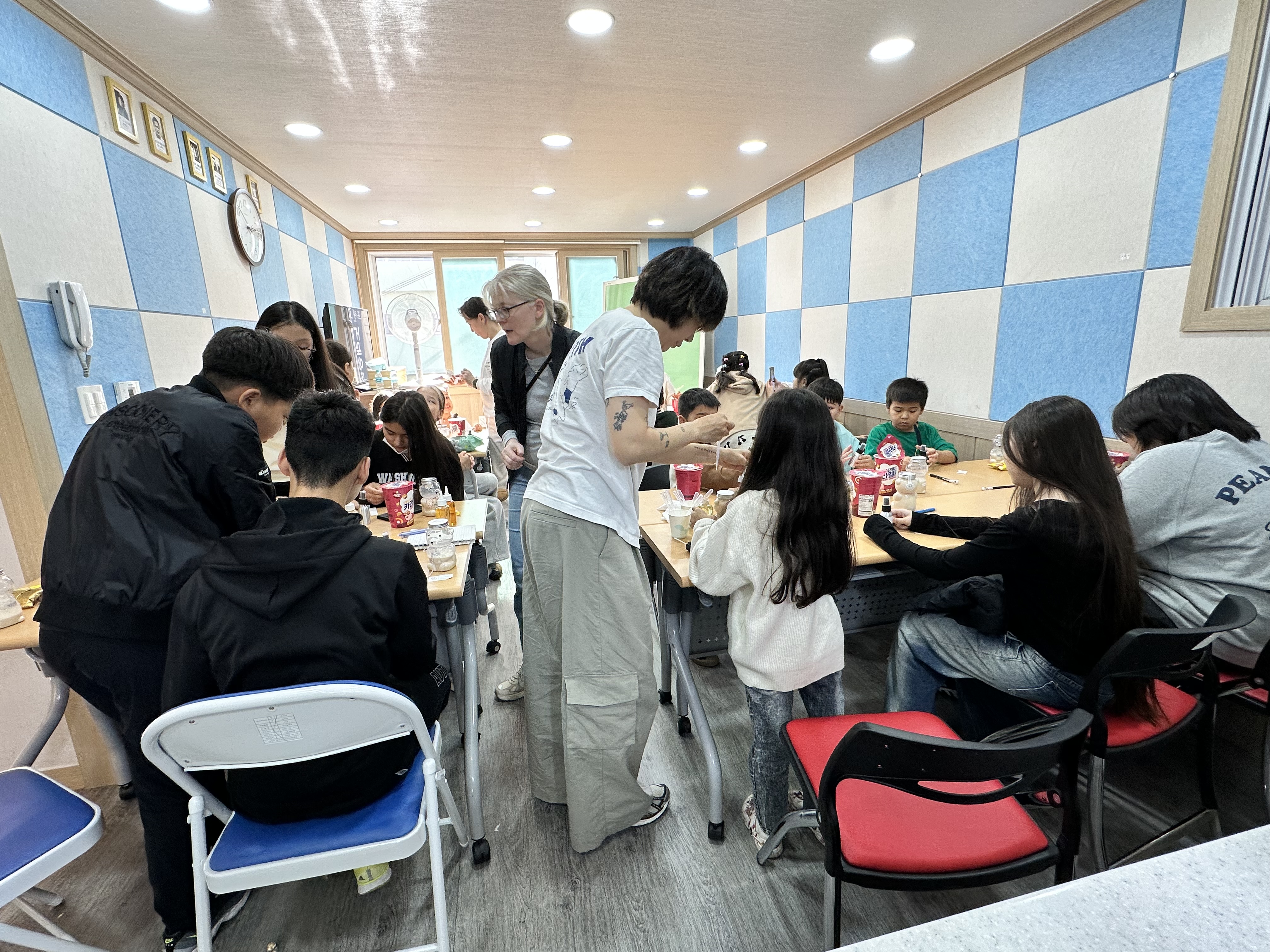 이어서 아이들과 강사님, 통역샘이 우르르 센터로 들어왔습니다:)