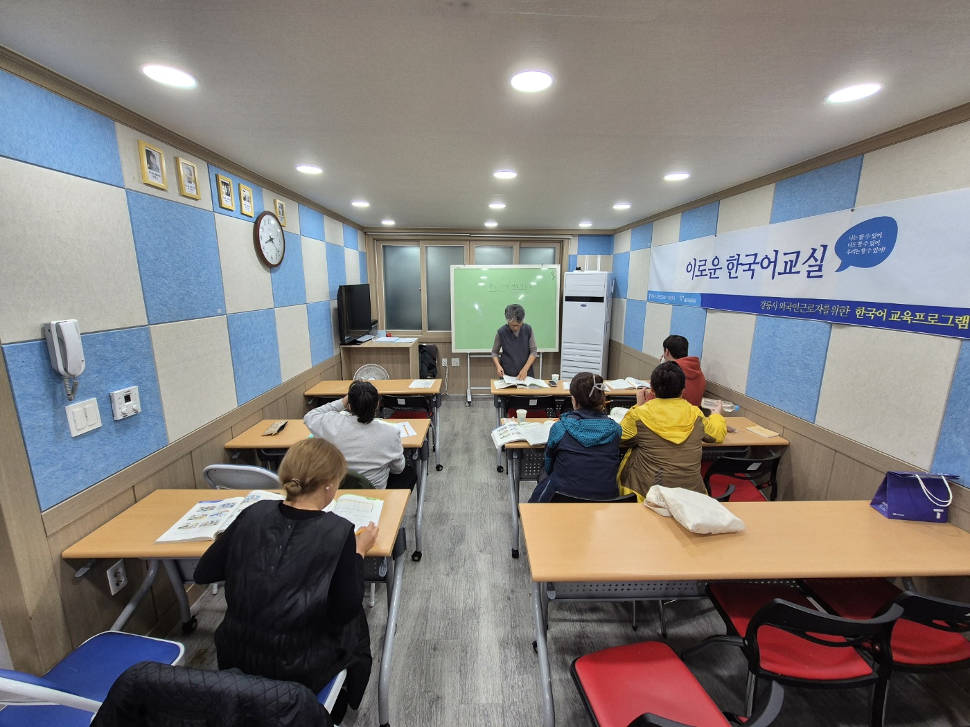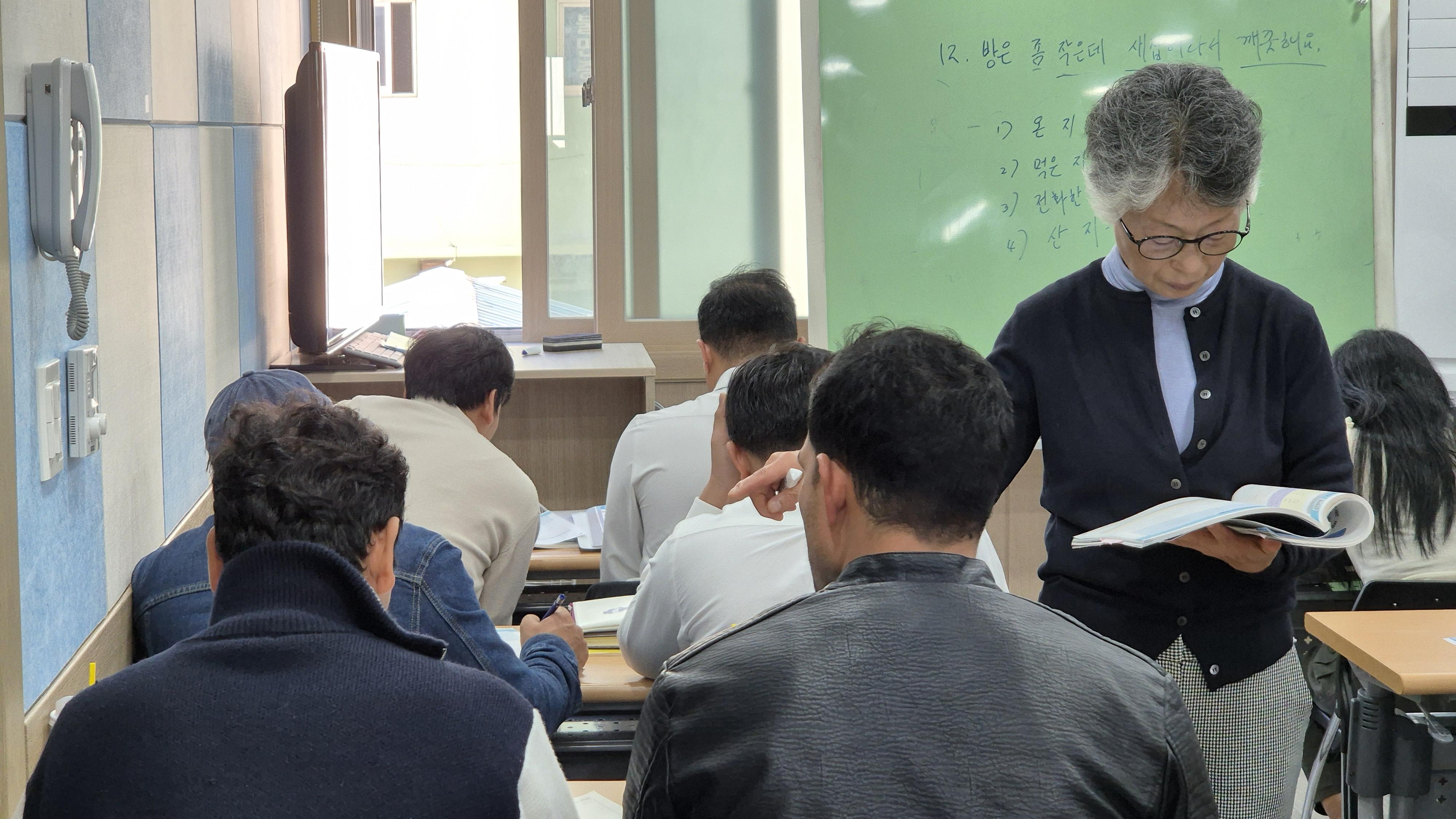 다양한 수준의 외국인근로자가 한번에 수업을 듣기 때문에 난이도 조정이 항상 어렵습니다. 수업 내용에 맞춰 미리 공부를 하고 와도 어렵다고 합니다. 다행이 강사가 유쾌하고 재미있게 항상 수업을 해 능률만큼은 최고라고 합니다.