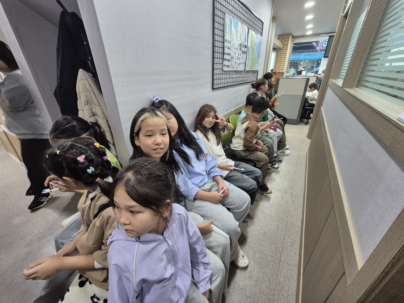 아무래도 1명이 불소 도포를 하다보니, 순서가 많이 밀렸지만 즐겁나 봅니다.