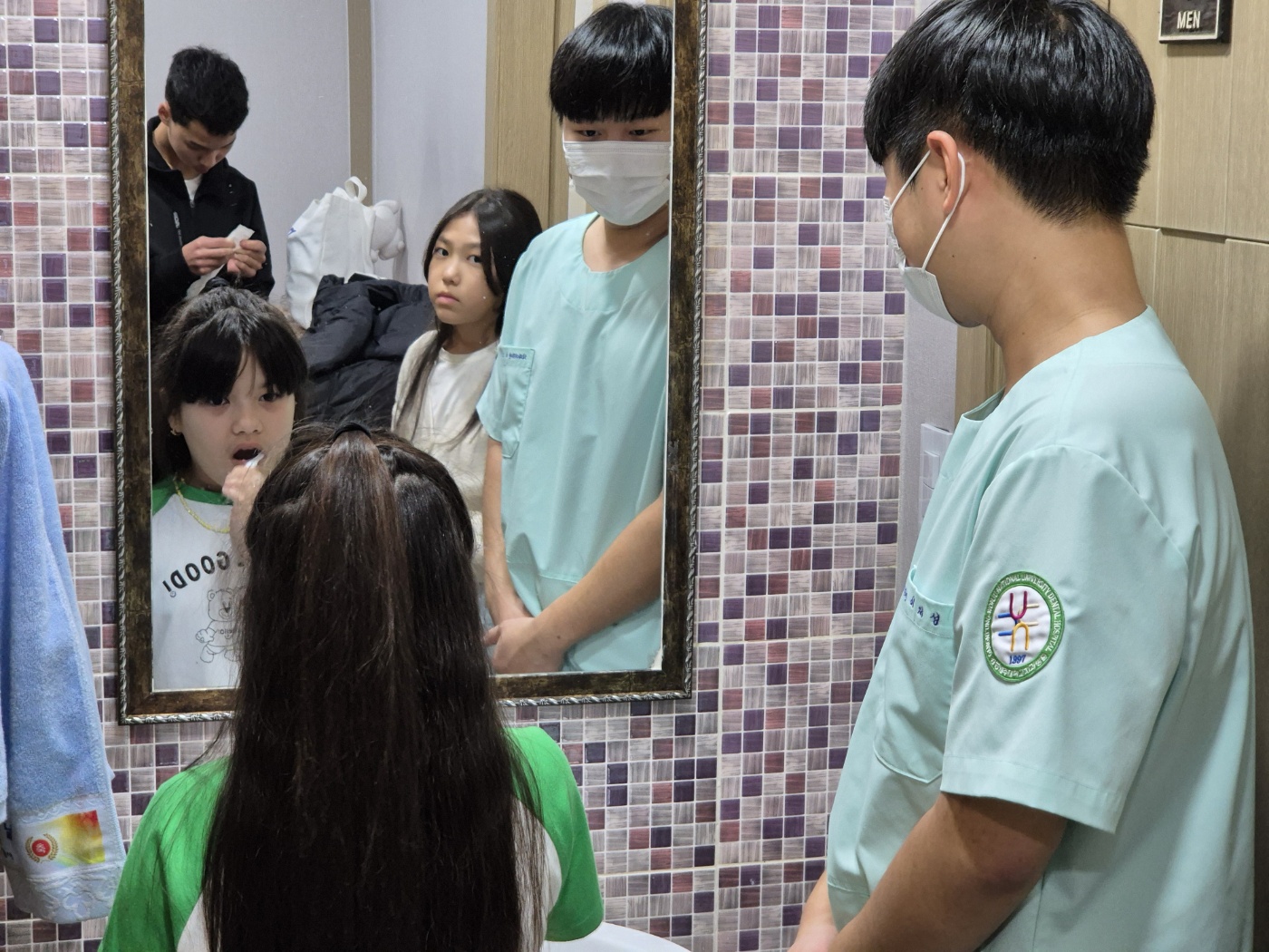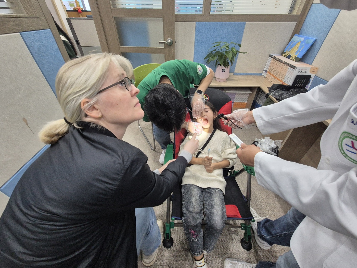 불소도포의 경우 6개월 주기로 해주면 좋다고 합니다. 바쁜 시간을 내 정세환 교수를 비롯한 치과대학/치과병원에서 찾아와 이주배경청소년들에게 불소도포를 추가로 실시하였습니다. 불소 도포를 하면서 그 사이 치아건강은 어떻게 되었는지 같이 검사하기로 하였습니다.