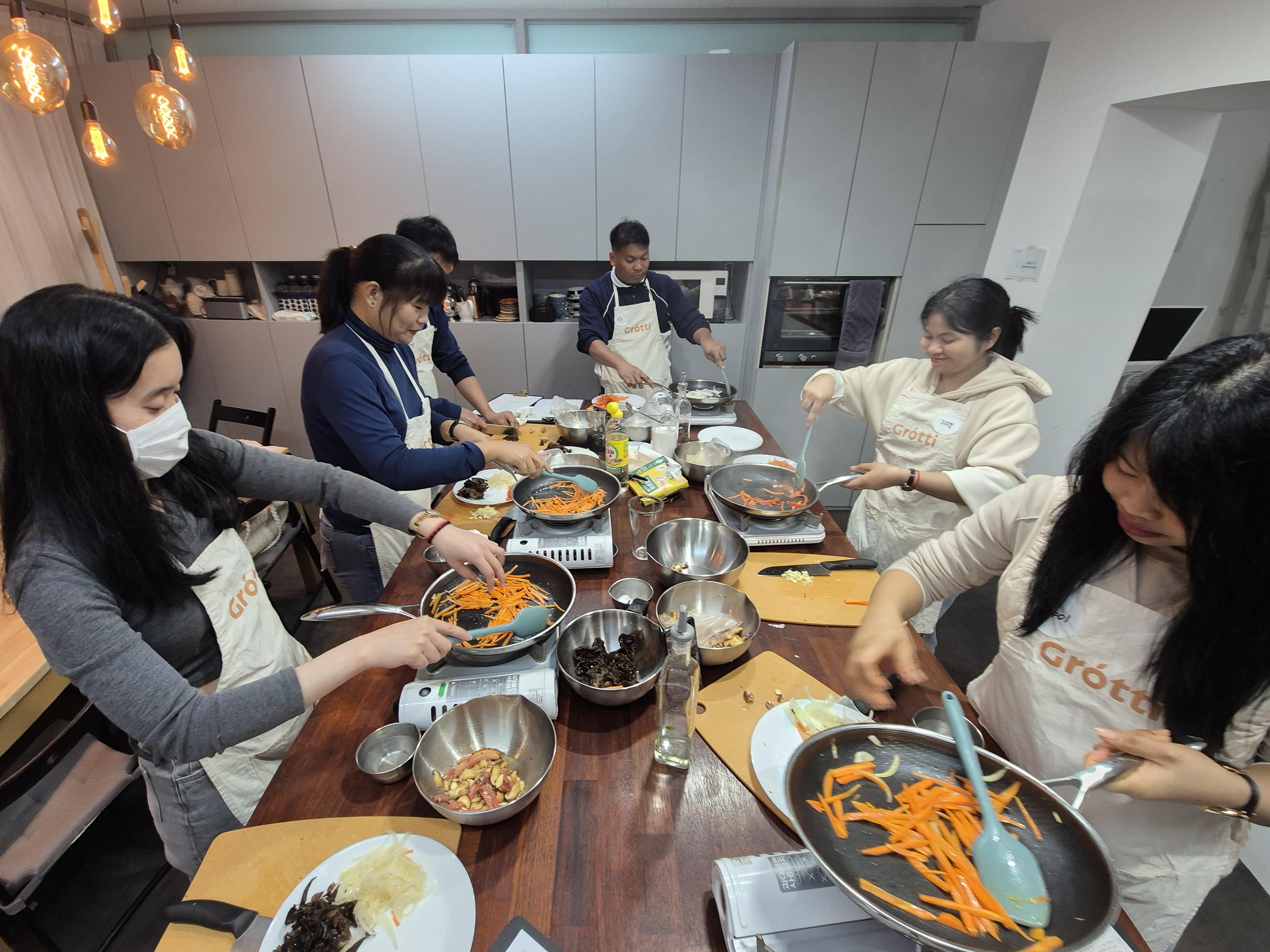 그로티 김나연 대표가 잡채를 만들면서, 식재료, 음식이야기, 한국음식문화를 곁들여 들려주었습니다. 한국어 반에 영어 반에....오히려 강사가 소통에 많은 신경을 쓰는 듯했습니다.