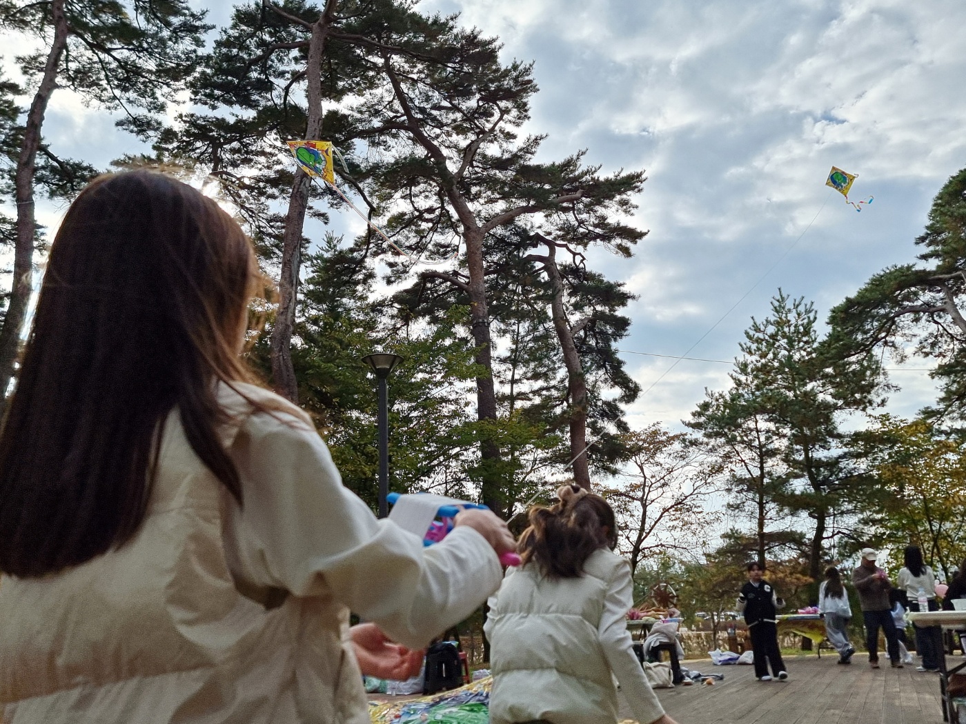 이리저리 뛰어서 연을 띄우고, 줄을 늘리고, 나무에 걸릴세라 분주하게 움직입니다.