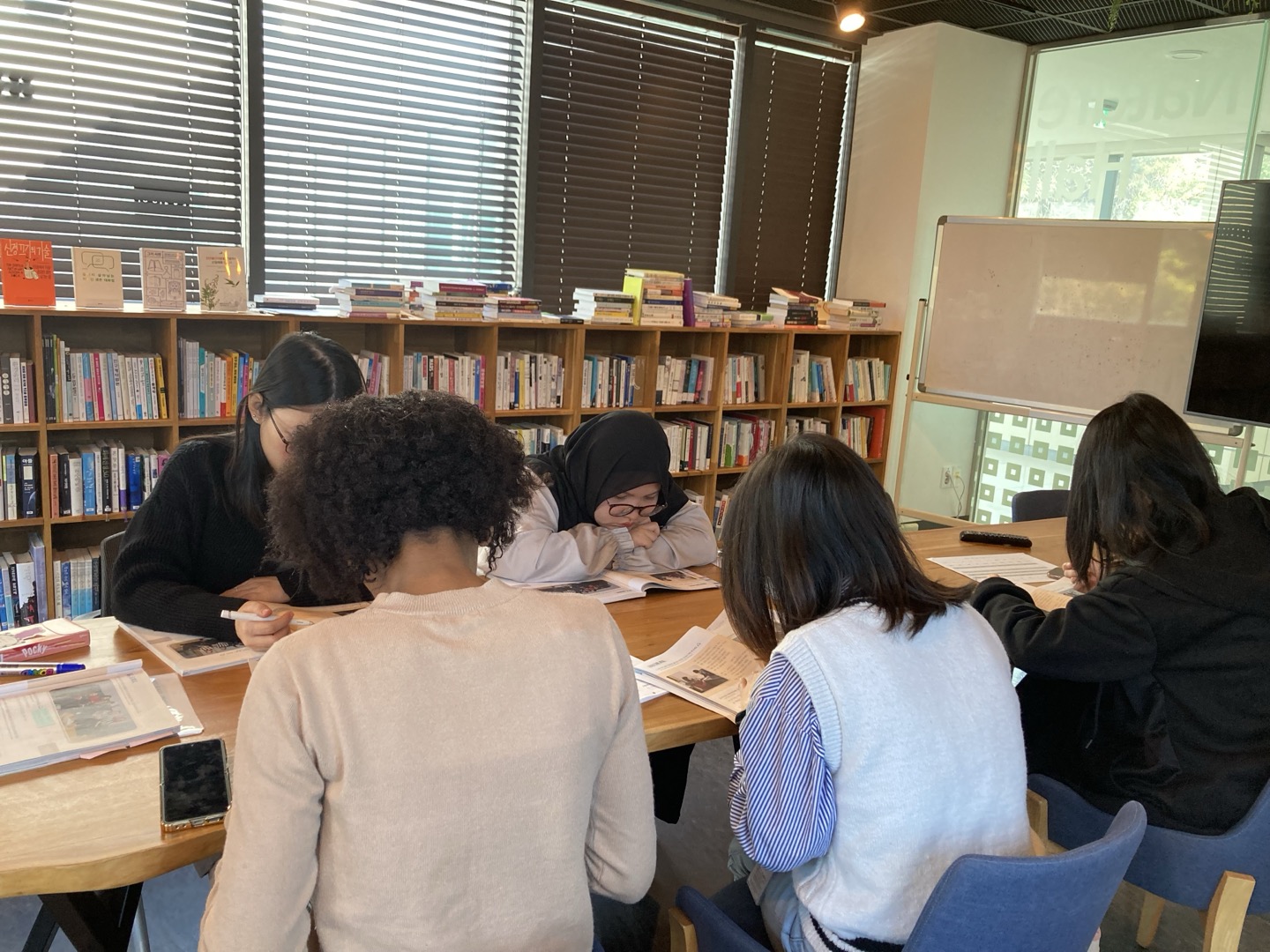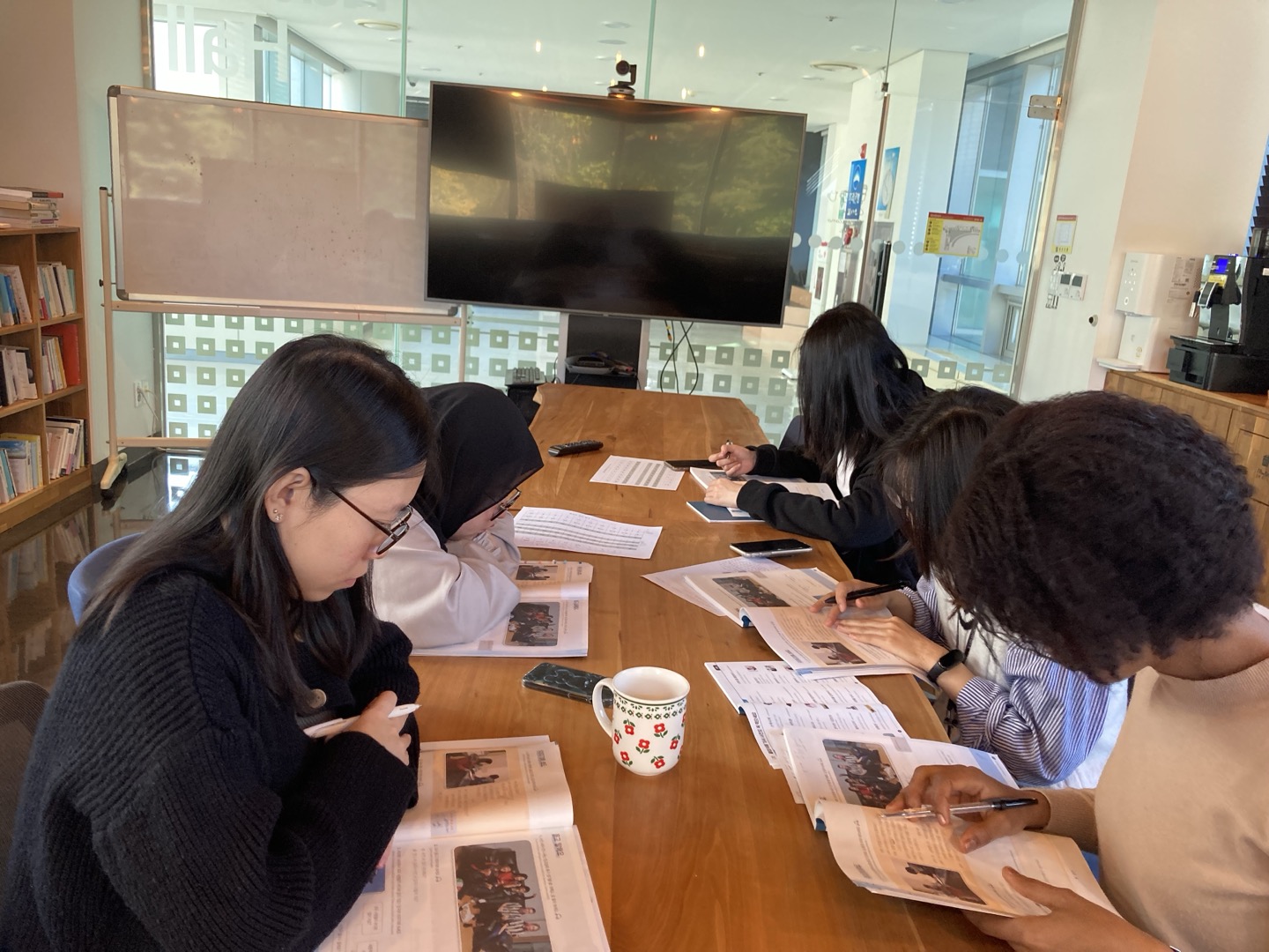 올해 하반기 KIST 한국어교실에 참여하는 유학생은 총 5명입니다. 상반기부터 공부하고 있는 유학생이 2명, 새로 시작한 유학생이 3명입니다. 먼저 한국어공부를 시작한 유학생은 이제 어느 정도 한국어로 소통이 가능합니다. 이중언어로 영어를 사용하는데요. 처음에는 영어를 정말 많이 사용했었지만, 지금은 한국어도 어느 정도 섞어서 수업을 진행하고 있습니다.