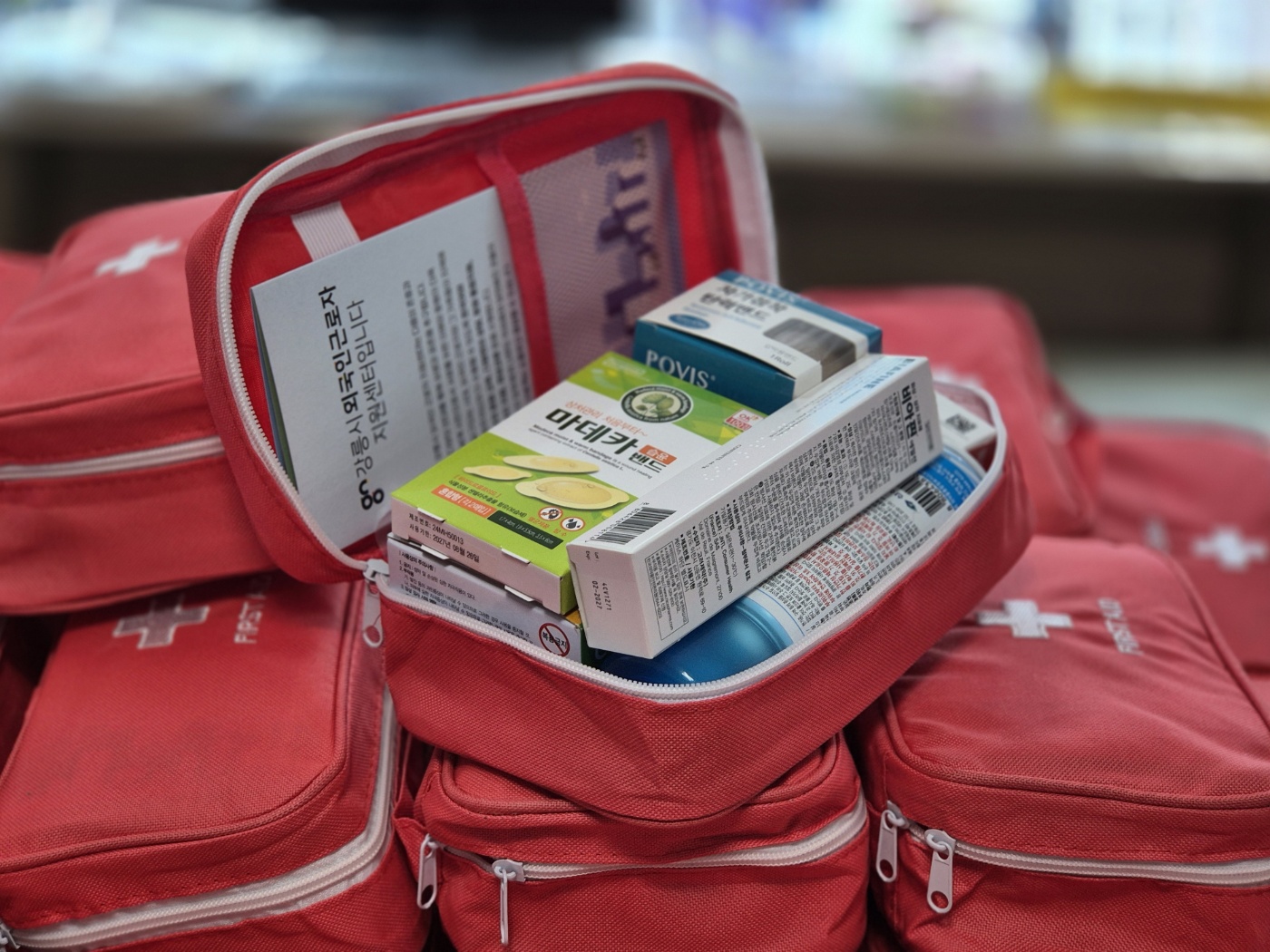구급낭과 약품을 구입해서 구급낭에 담았습니다.