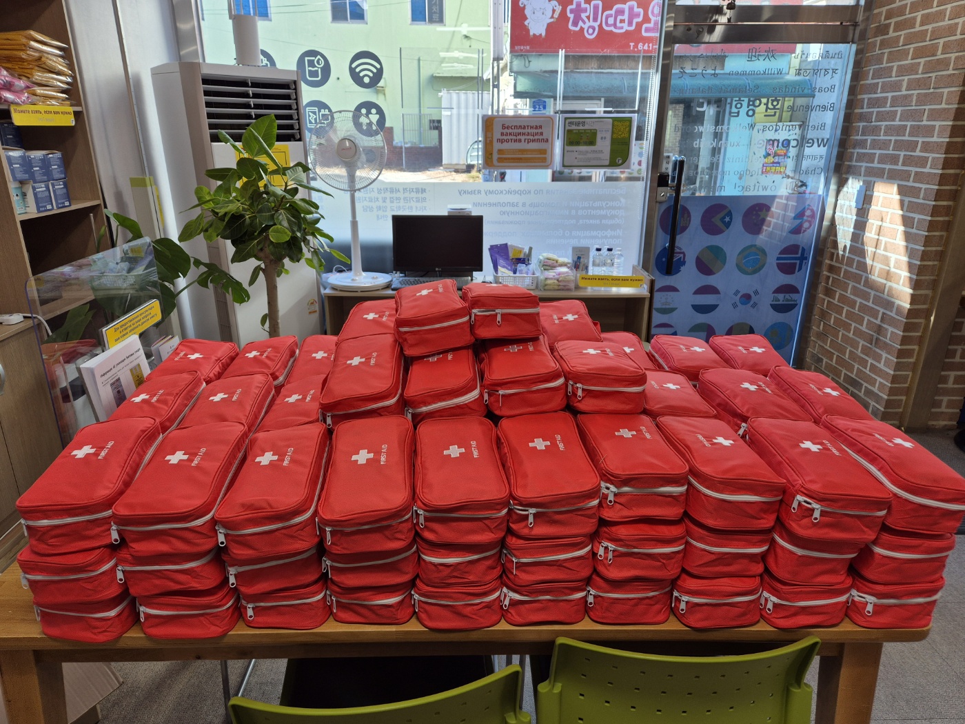 강원도사회복지공동모금회 배분사업으로 운영하고 있는 "외국인근로자와 그 가족의 행복한 지역정착을 위한 의료접근성 개선 및 문화지원사업" 중 의료접근성 개선을 위해 가정용 의료구급낭을 제작하였습니다.