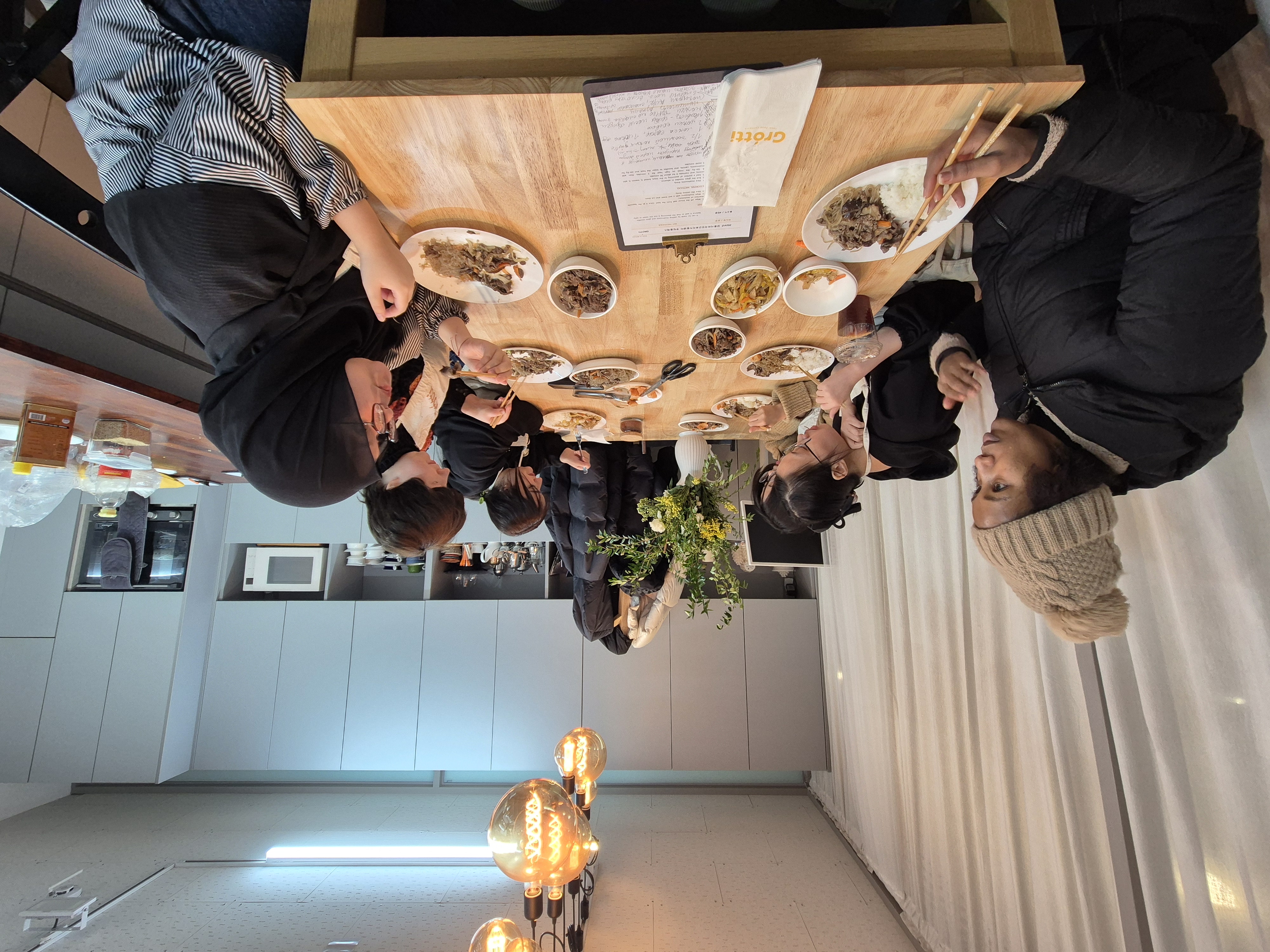 금새 만들어진 음식을 분위기 좋은 식탁에 앉아서 나눠 먹었습니다. 수다도 빠질 수 없죠...