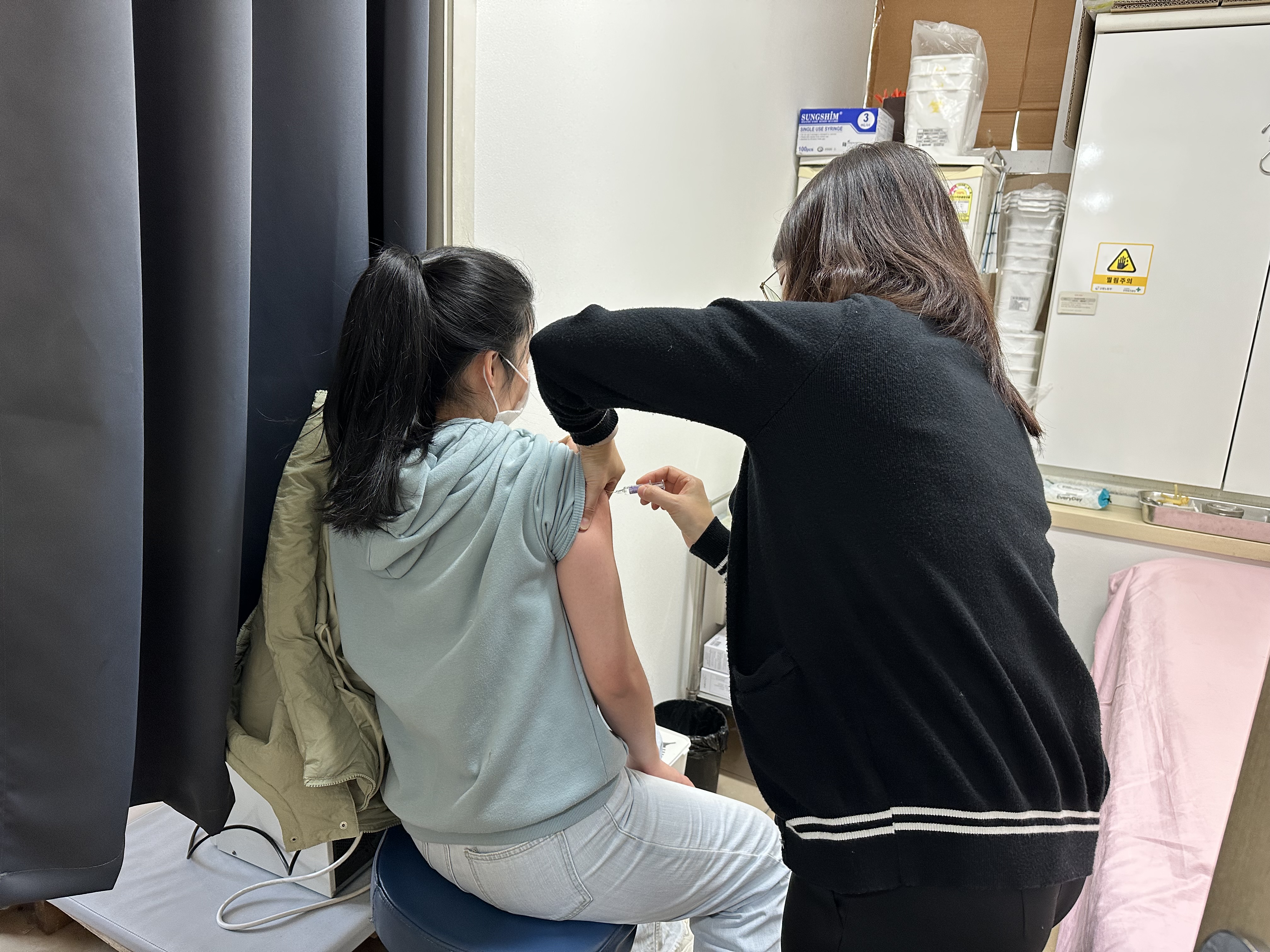 외국인근로자에 대한 독감예방접종을 하고 있습니다.