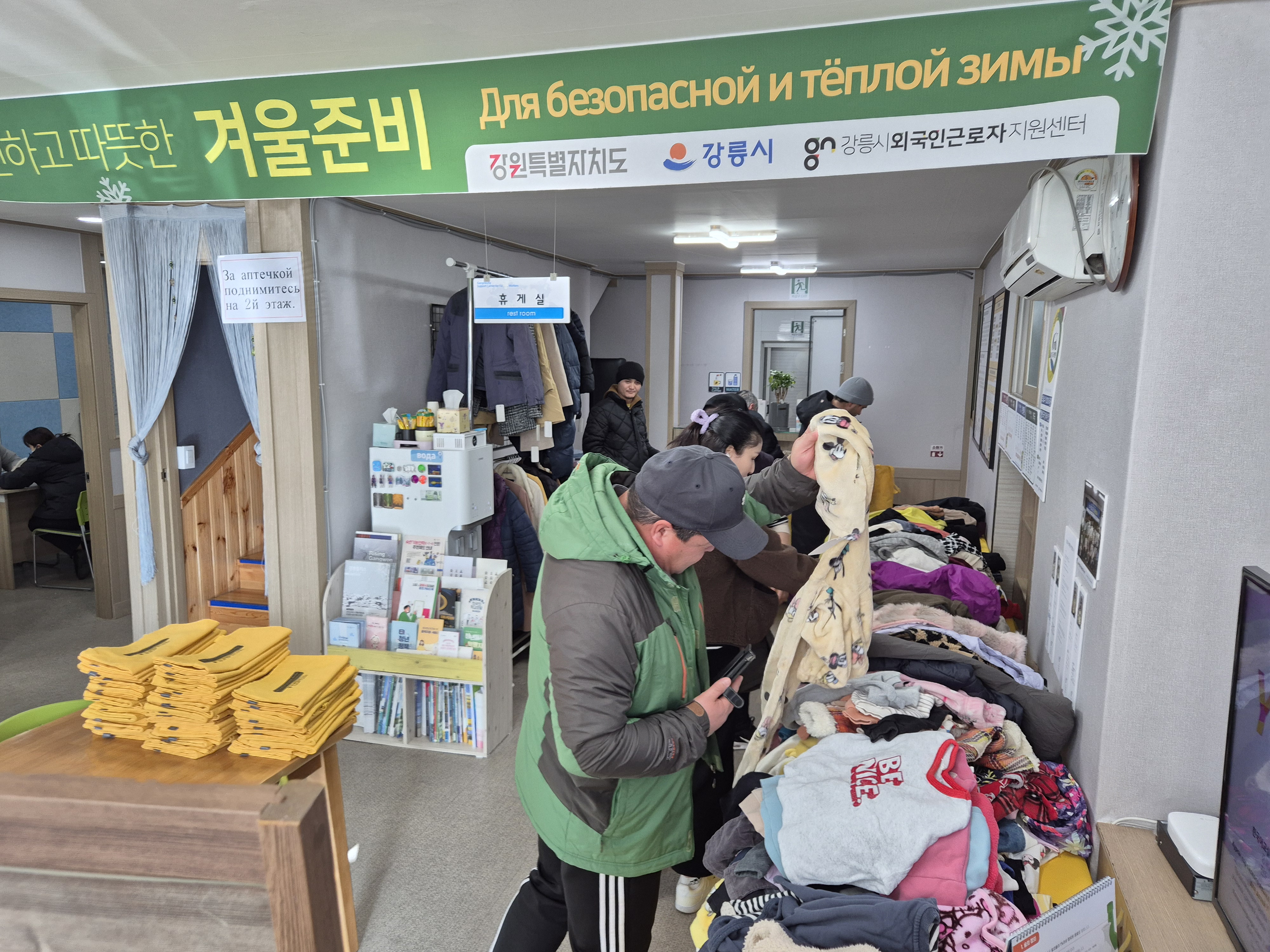 지난 봄에 경포호수보호단체로부터 기부받은 아동용 내복 100여벌과 주변에서 기부해 준 겨울 옷들, 그리고 외국인근로자가 기부한 옷까지 풍성하게 준비했습니다.