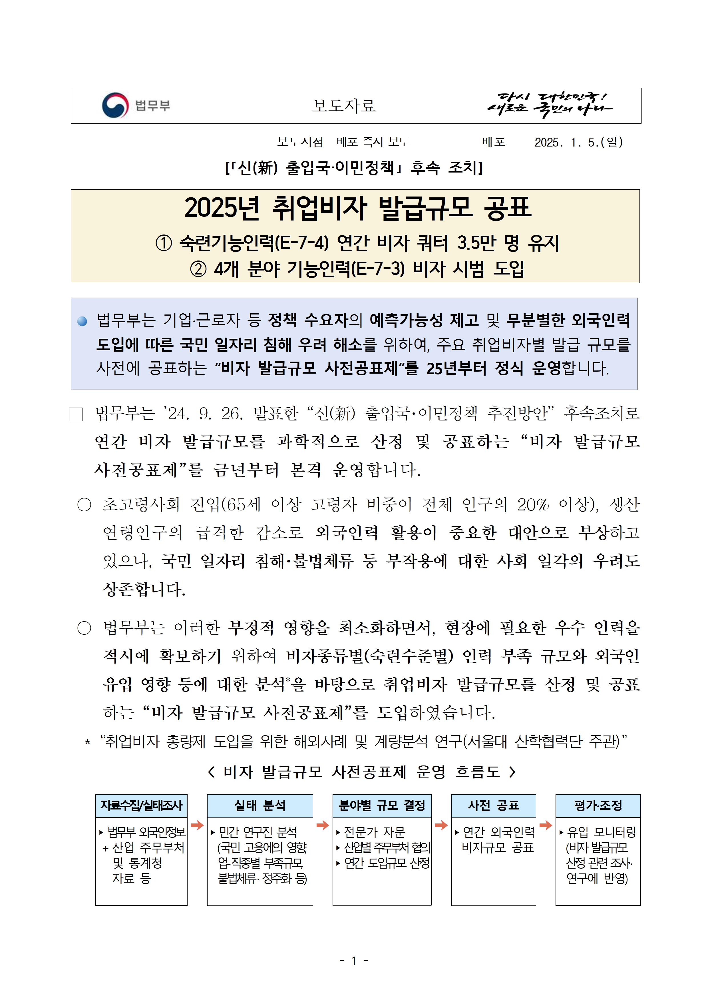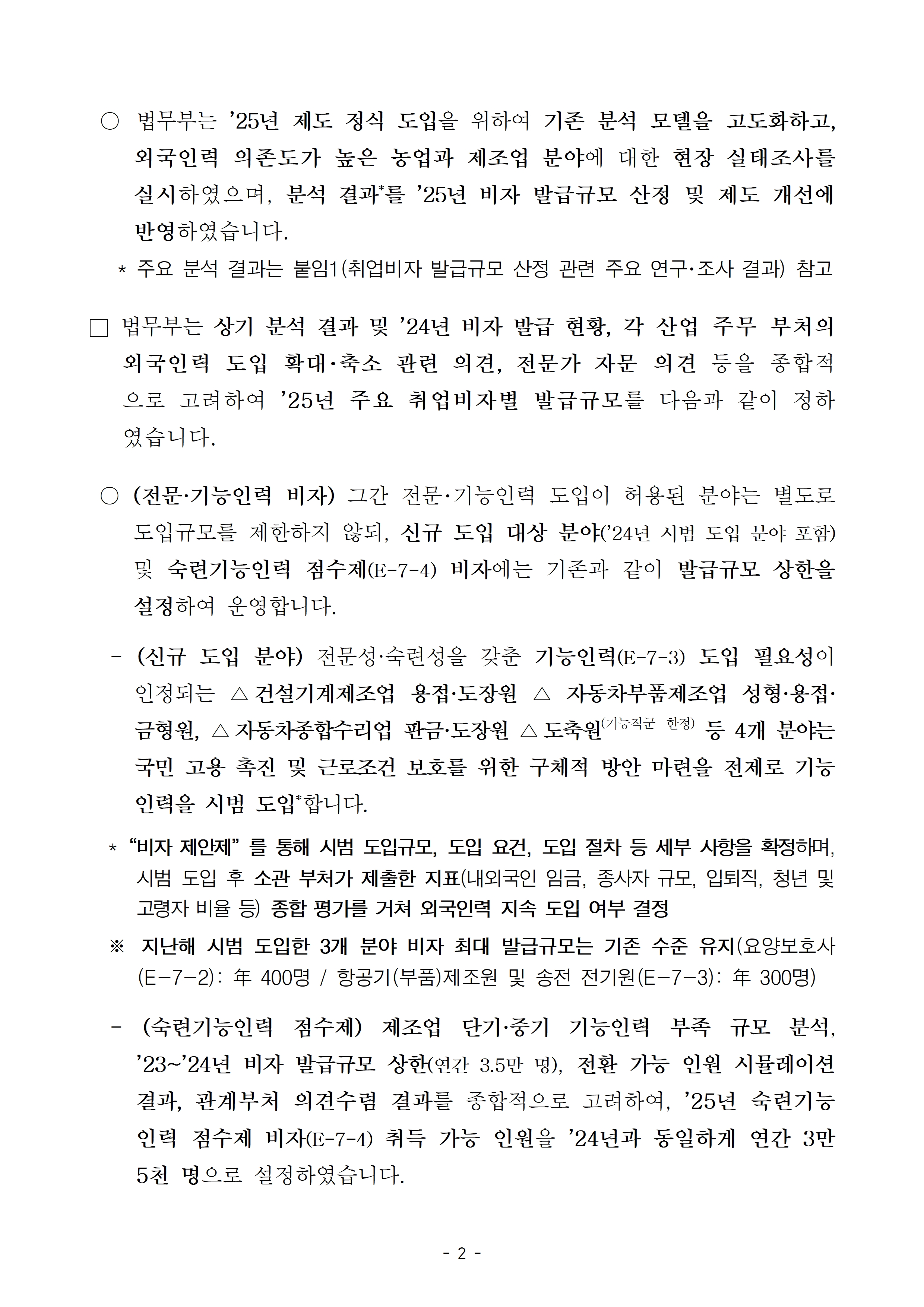 (보도자료) 2025년 취업비자 발급규모 공표 (배포즉시보도).hwp