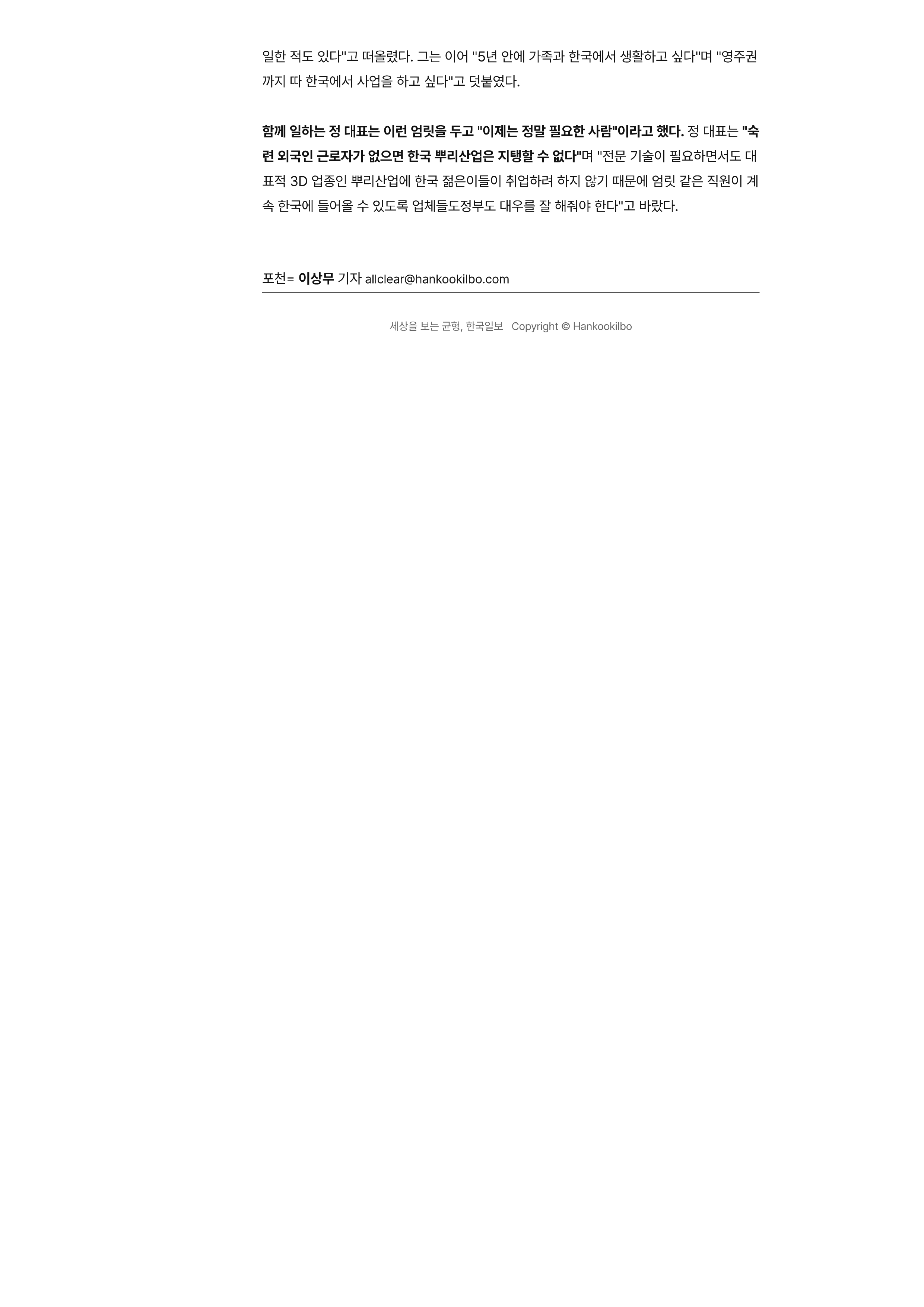 원문기사 : 한국일보_한국인 사장님이 믿고 맡기는 네팔인 팀장님...뿌리 산업 지키며 사업가 꿈 키워요