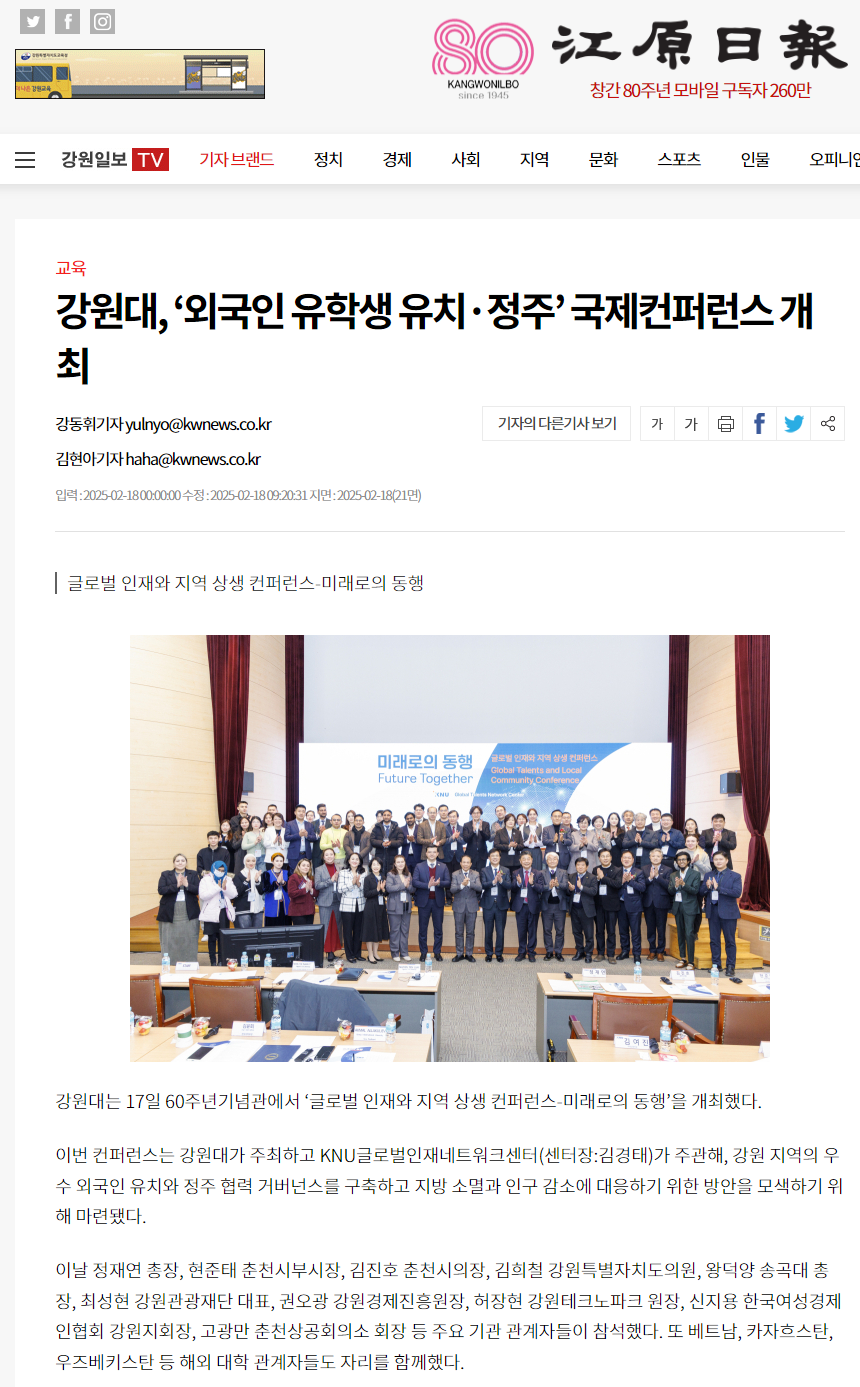 | [강원도민일보] 강원 외국인 유학생 유치 사활...무분별 확대 우려 목소리 (0) | 2025.02.18 |