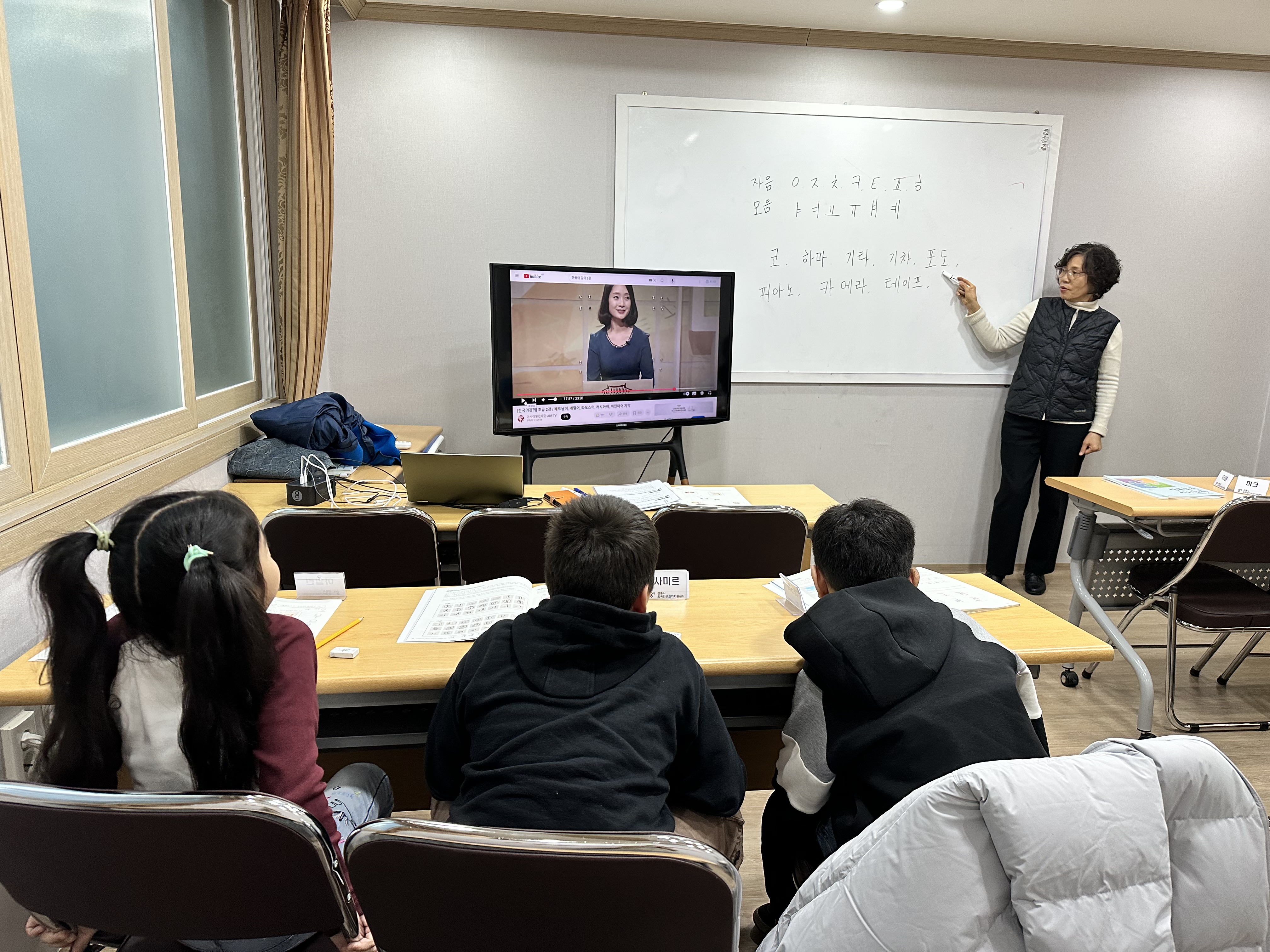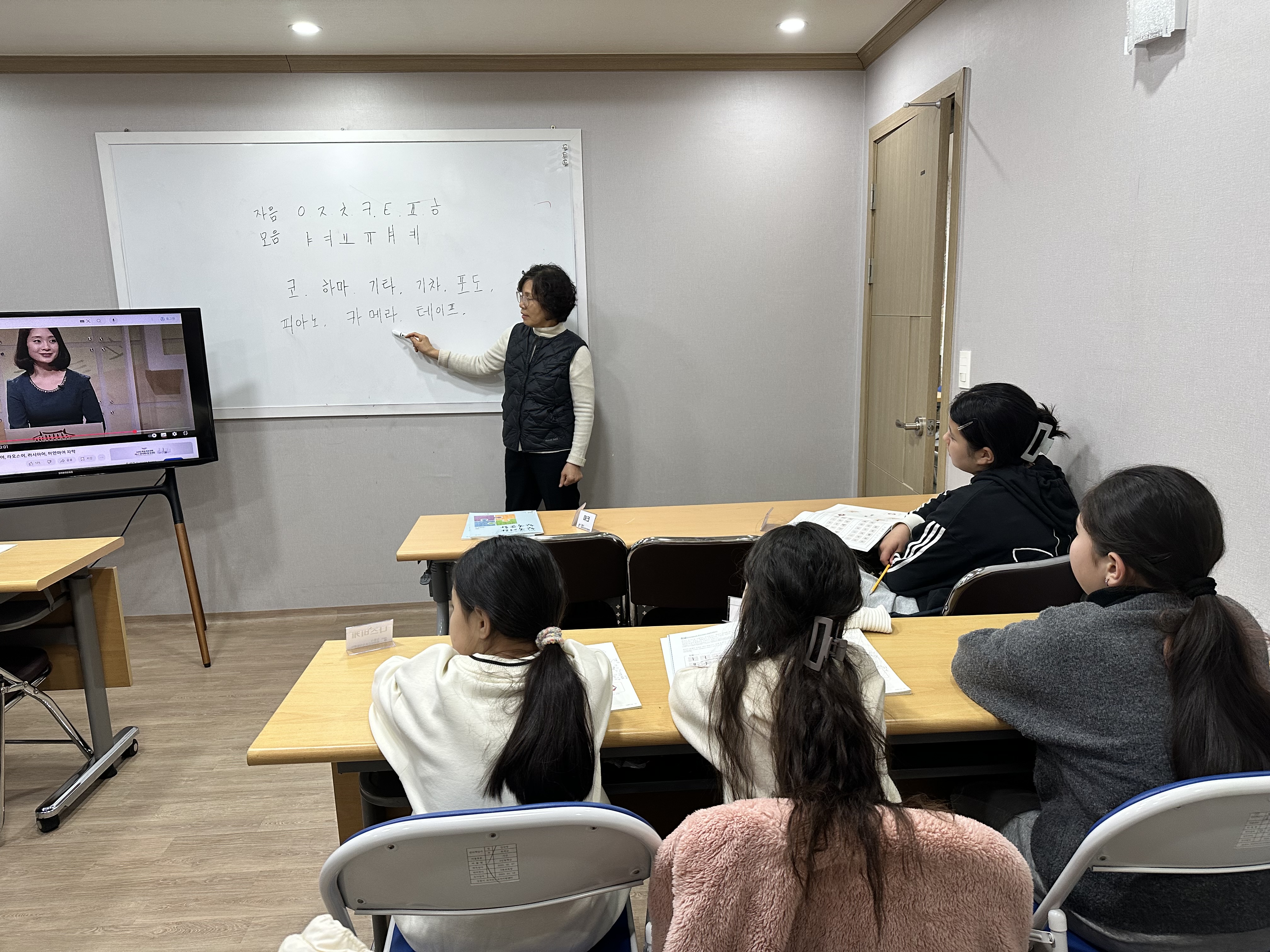 입문반에선 자음과 모음을 익히고 입모양을 보고 소리내는 방법을 알고 따라하는 시간을 가졌습니다.